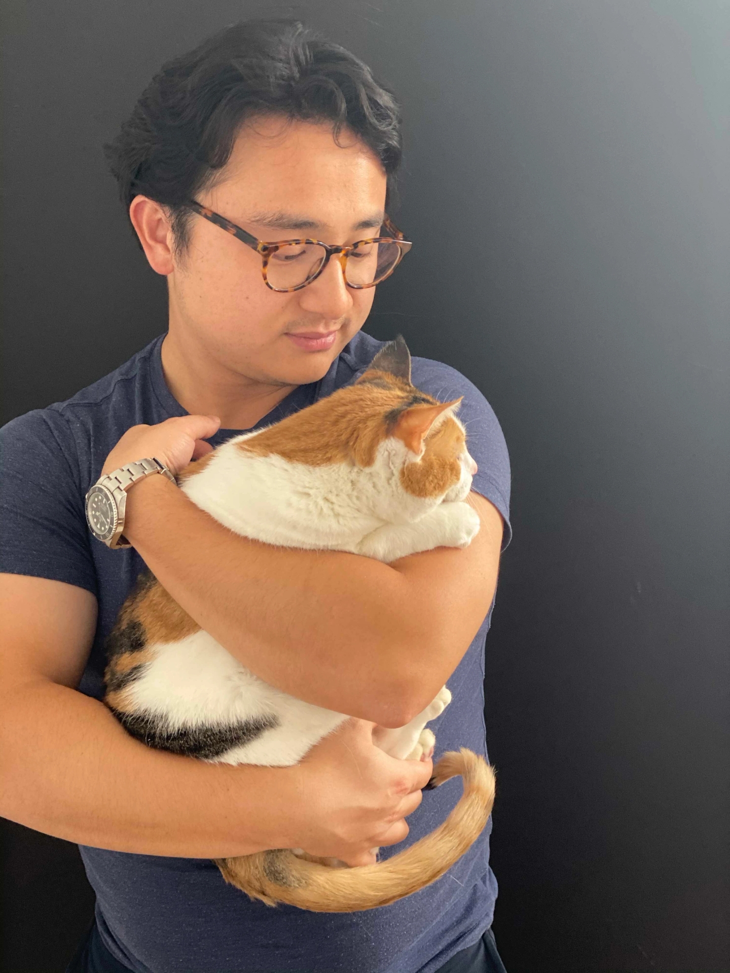 Provide support by placing your arms under the cat to support both the cats chest and back end.